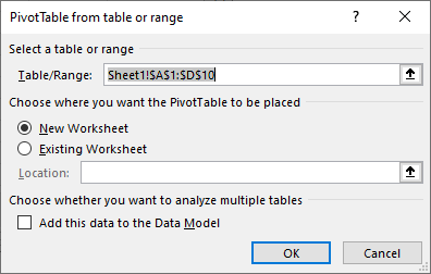 נבחר בתפריט הוספה -> טבלת ציר Power Pivot -> מטבלה / אזור