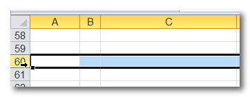 ניתן לבחור את כל השורה כאשר עומדים עם סמן העכבר מספר השורה (למשל שורה 60):