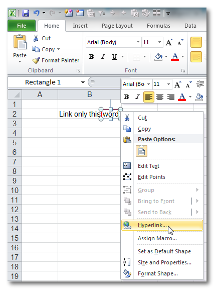 האם יש דרך באמצעותה ניתן ליצור היפר קישור רק על מילים ספציפיות בתוך תא אחד, באקסל?