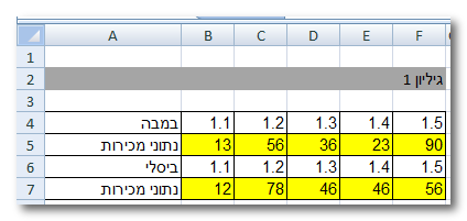 להלן דוגמא - נניח גיליון 1 מכיל טבלת נתונים שבה נרצה לחפש ערך נתוני מכירות בהתאמה לפריט: