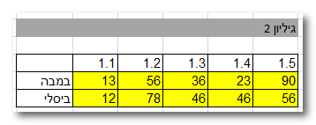 גיליון 2 הוא גיליון התוצאות שבו נרצה את הערכים בהתאמה: