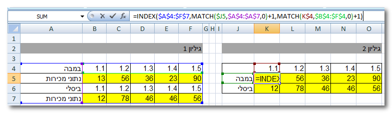 MATCH השני מחזיר את העמודה המתאימה. וכך מתקבלת התוצאה הנכונה.