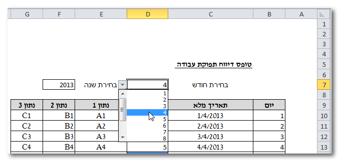 1) לאפשר בחירה של חודש ושנה (בעזרת הגדרת רשימה באימות נתונים):