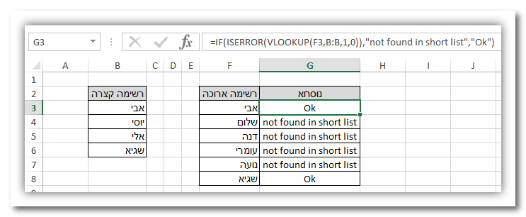 להלן דוגמא בתמונה הבאה (הנוסחה בשורת הנוסחאות):