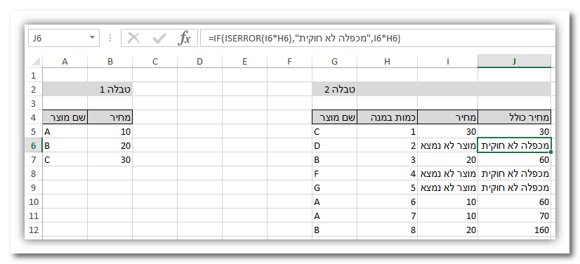 אני צריך עזרה באיך למשוך את ה"מחיר" מהטבלה הראשונה בהתאם ל"שם המוצר"