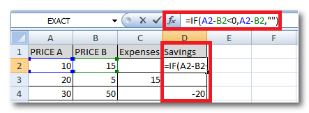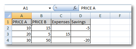 בשתי העמודות PRICE A PRICE B - ישנם מחירים, החשבון בניהם PRICE A- PRICE B