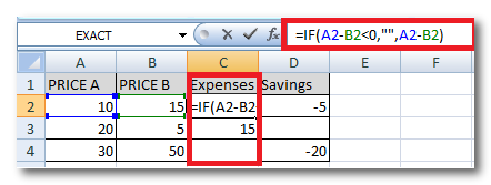 נוסחת IF שבדוגמא שואלת בתנאי האם ההפרש קטן מאפס. אם כן, להשאיר תא ריק. אחרת לשים את התוצאה.