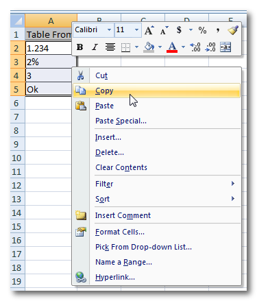 ראשית, צריך לבחור את טווח התאים להעתקה (כפתור עכבר ימני + העתק):
