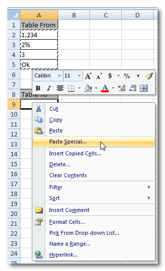 אגב, ניתן לחזור מספר פעמים על הדבקת אותם נתונים עם בחירת אפשרויות הדבקה שונות בכל פעם.