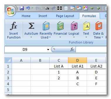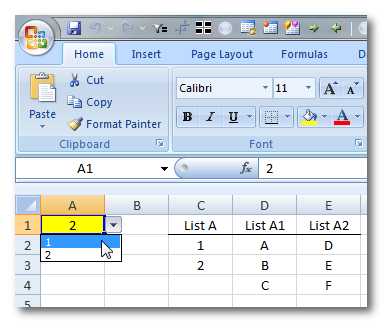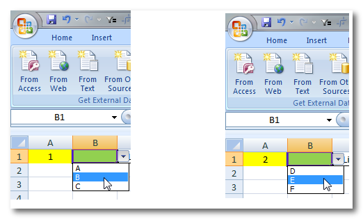 לדוגמא: אם A1=1 אז B1 יתן אפשרות לבחור אחד מהערכים הבאים - A,B,C