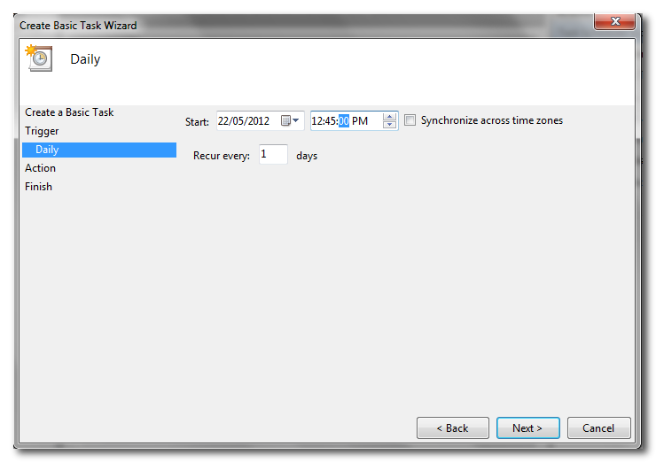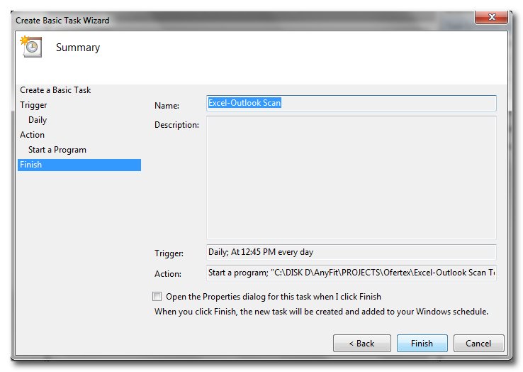 מעתה, תרוץ סריקת אאוטלוק כל יום בשעה 12:45.